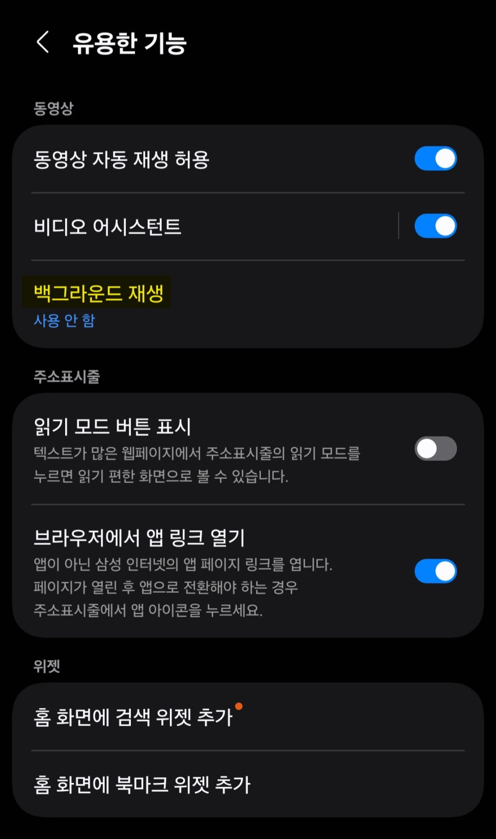② 설정 ▶ 유용한 기능 ▶ 백그라운드 재생