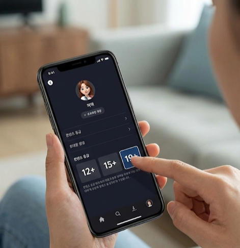 하지만 인증 정보는 '계정 소유자(명의자)'의 휴대전화 정보를 입력해야 합니다. - 성인 콘텐츠를 시청하려는 모든 프로필에서 각각 콘텐츠 등급을 [19+]로 설정해야 합니다.